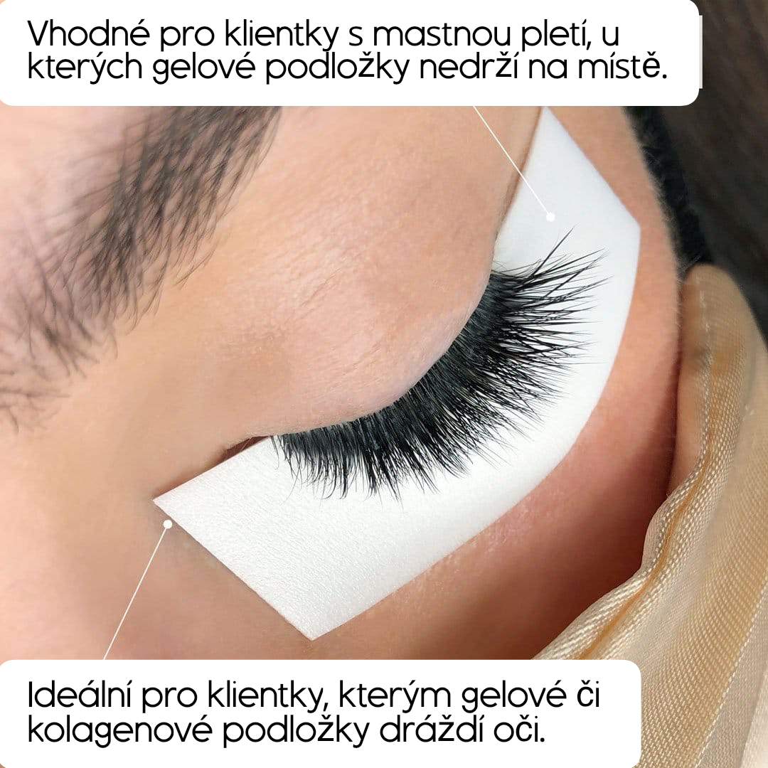 Hypoalergenní pěnová páska, kterou můžete použít jak na fixaci spodních řas, tak na povytažení horního víčka. Je skvělá především pro klientky s mastnou pletí, kde gelové podložky příliš nedrží na místě. Navíc je řešením pro ty, kterým gelové či kolagenové podložky dráždí oči.
